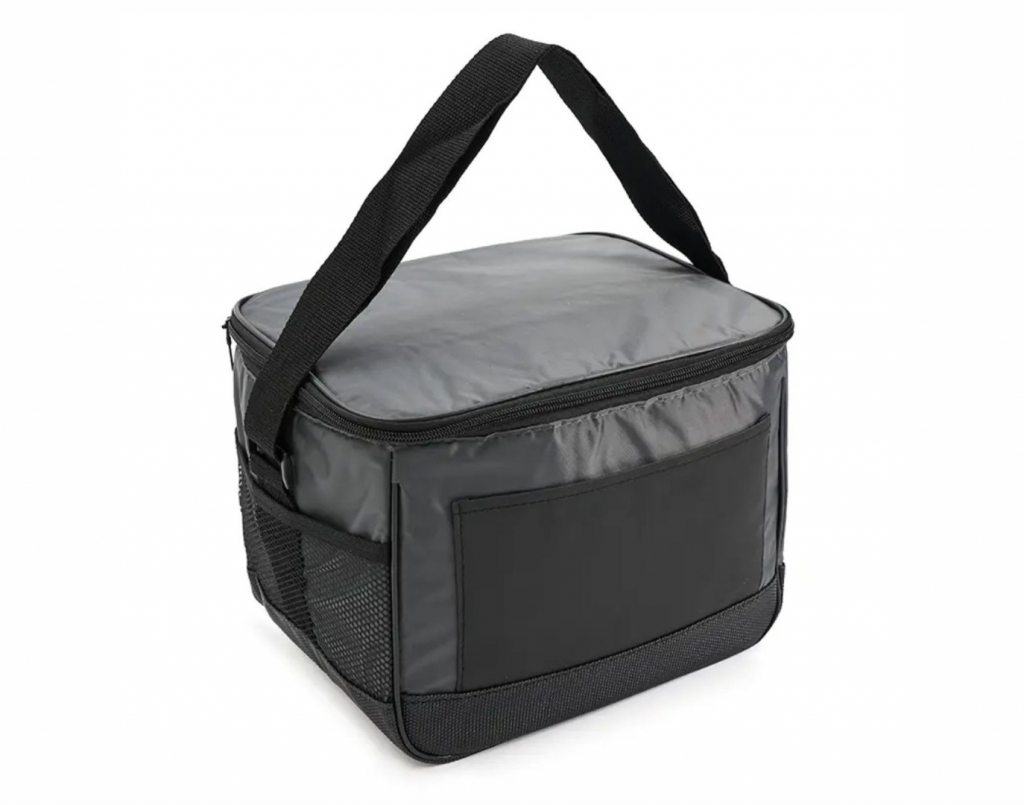 confeccionado en tela 70D con interior de aluminio y espuma PE. Cuenta