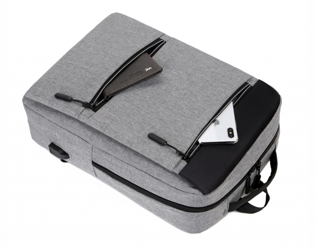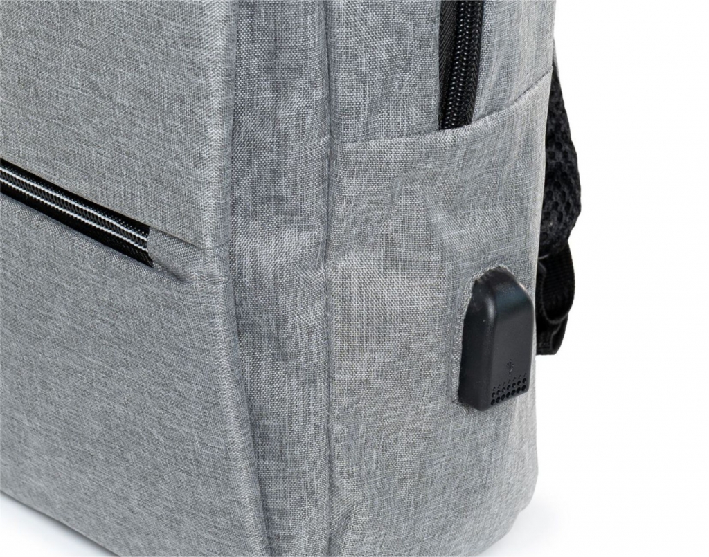 objetos en el frente. Interior forrado y acolchado. Salida externa USB con cable para
